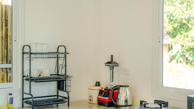Die Unterkunft verfügt über eine voll ausgestattete Küche mit einer Herdplatte, einem Kühlschrank, einer Mikrowelle und einem Wasserkocher. Es sind keine Informationen zu spezifischen Verpflegungsmöglichkeiten vorhanden.