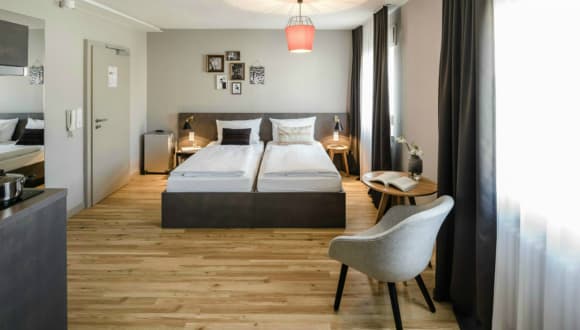 Bold Studio (14-18 m²) In unseren Bold Studios schaffen natürliche Materialien, urbane Töne und kuratierte Designer-Möbel eine echte Wohlfühlatmosphäre inmitten der Stadt. Die Apartments sind moderne Rückzugsorte ohne Schnickschnack, ausgestattet mit einer Kitchenette, einem Schreibtisch, einem Flat Screen TV, einem gemütlichen Doppelbett (160x200cm) sowie einer Reihe von ausgewählten Wohnaccessoires. Alle Bäder verfügen über eine Glasduschkabine, einen Kosmetikspiegel und einen Fön. Bold Super Studio (35 m²) In unserem Bold Super Studio schaffen natürliche Materialien, urbane Töne und kuratierte Designer-Möbel eine echte Wohlfühlatmosphäre inmitten der Stadt. Getrennt durch eine Durchgangstür verbindet unser Bold Super Studio auf 30 m² einen Bold Single Room mit einem Bold Single Studio. Jedes Zimmer verfügt über ein eigenes Bad, einen Schreibtisch, einen Flat Screen TV und ein bequemes Einzelbett, teilt sich aber eine gemeinsame Kitchenette. Alle Bäder verfügen über eine Glasduschkabine, einen Kosmetikspiegel und einen Fön. Bold Flat (90 m²) Das perfekte Quartier für Familien oder größere Gruppen. In unserer Bold Flat schaffen natürliche Materialien, urbane Töne und kuratierte Designer-Möbel eine echte Wohlfühlatmosphäre inmitten der Stadt. Das Apartment verfügt auf 90 m² über 3 Schlafzimmer mit jeweils 2 Einzelbetten und einem Schreibtisch, ein Badezimmer mit Badewanne und separatem WC sowie über eine Wohnküche mit Kitchenette und Esstisch. Alle Bäder verfügen über eine Glasduschkabine, einen Kosmetikspiegel und einen Fön.