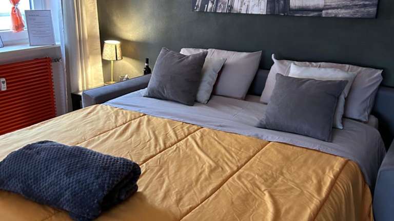 Die Ferienwohnung hat ein Schlafzimmer sowie ein Wohnzimmer. Sie ist mit einer voll ausgestatteten Küche, einem Kühlschrank und einer Kaffeemaschine ausgestattet. Das Badezimmer verfügt über ein Bidet und eine Dusche. Handtücher und Bettwäsche werden bereitgestellt.