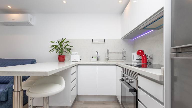 Die Ferienwohnung besteht aus einem Schlafzimmer, einem Wohnzimmer sowie einer voll ausgestatteten Küche, die mit einem Kühlschrank und einer Kaffeemaschine versehen ist. Zudem gibt es ein Badezimmer, das mit einem Bidet und einer Dusche ausgestattet ist. Handtücher und Bettwäsche werden in der Unterkunft bereitgestellt. Die Wohnung ist klimatisiert und umfasst Nichtraucherzimmer.
