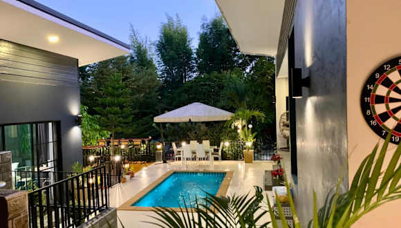 Die Bonnie Baan Private Pool Villa in Mae Rim ist eine einladende Unterkunft, die mit kostenlosem WLAN, einer Terrasse und Klimaanlage ausgestattet ist. Diese Villa bietet einen eigenen Garten und einen kostenlosen Privatparkplatz. Der Aussenpool sorgt für eine angenehme Abkühlung an heissen Tagen. Die Unterkunft ist Nichtraucherzone und bietet Familienzimmer sowie Grillmöglichkeiten.