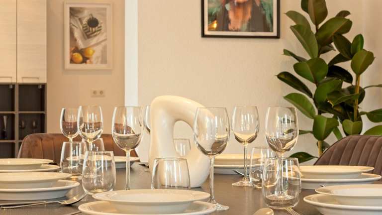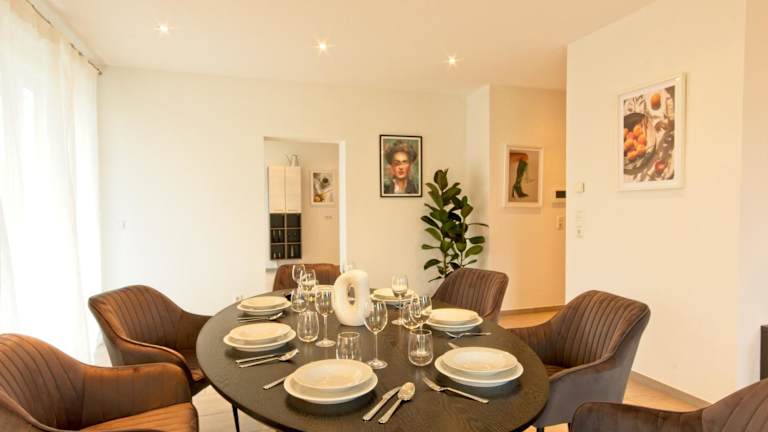 Die Unterkunft verfügt über eine eigene Küche mit Kühlschrank, Geschirrspüler und Ofen, welche Selbstverpflegung ermöglicht. Essenslieferungen in die Unterkunft sind ebenfalls möglich.