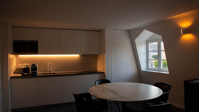 Jede Wohneinheit in der Unterkunft BORD EAU Guest House ist mit einer Küche ausgestattet, die einen Kühlschrank und einen Geschirrspüler umfasst. Zur Ausstattung gehören zudem ein Safe, ein Satelliten Flachbild-TV, Bügelmöglichkeiten, ein Schreibtisch und ein eigener Sitzbereich mit einem Schlafsofa. Alle Wohneinheiten verfügen über ein eigenes Badezimmer, das eine Dusche, kostenlose Pflegeprodukte und einen Haartrockner beinhaltet.