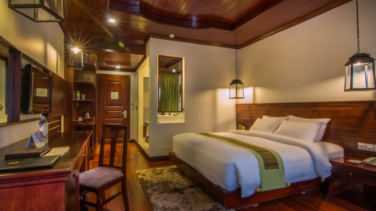Deluxe Rooms : Number of Deluxe rooms: 52 Size of each room: 40 square meters Spacious rooms excessively built with the famous Cambodian golden wood, delicately replicating the classic Cambodian architecture to offer a warm and homey ambiance. Landmark rooms : Number of Landmark rooms: 127 Size of each room: 47 square meters With a vision to present the Cambodian landmark architecture, these delightful rooms, also inspired by nature, are rich in ornaments of local hand-made silk and crafts-art, precious wooden floors and Green-theme color of Cambodian Art-décor to ensure the profound relaxation and harmonious living. Borei Suites: Number of Suites: 7 Size of each suite: 65 square meters. Borei suites are accomplished in the prestigious way of grandeur living comprising of dedicated living area, make-up corner, and dining table and working desk. It is envisioned to provide both holiday-makers and business travelers a liberated setting where work and leisure can really co-exist. Royal Suites: Number of Suites: 2 Size of each suite: 188 square meters See…hear…smell…taste…touch…and live in the “Royal-Luxury” where you will witness the renaissance of the long-forgotten tradition of harmonious living and experience the Khmer culture’s discovery through your 5 senses. The option featuring large Jacuzzi, private standing rain-shower and separate toilet. This Royal suite is also inclusive of separate living room with its own sofa and TV, bath room, kitchen and bar counter, dinning/meeting table and inter-connected to another bedroom.