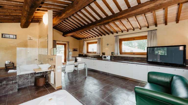Die Unterkunft Borghetto Poggio Bianco befindet sich in Radicondoli, umgeben von einer malerischen Landschaft. Die Sehenswürdigkeit Piazza del Campo liegt 49 km entfernt und Palazzo Chigi Saracini ist 43 km entfernt.