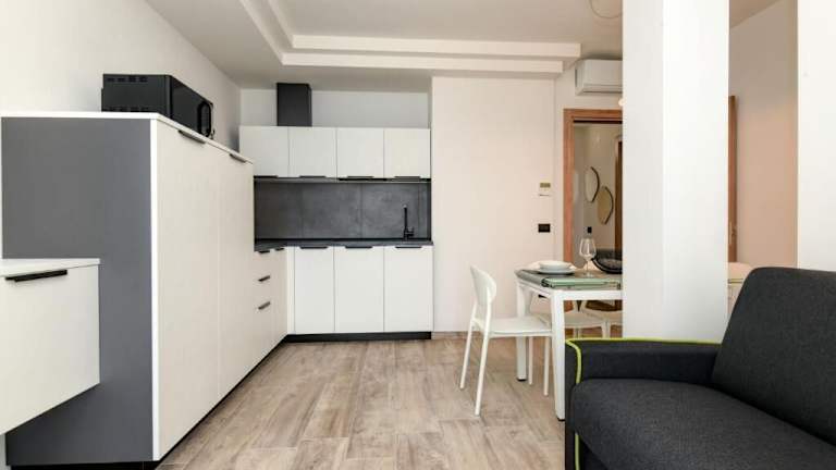 Die Zimmer verfügen über einen Sitzbereich, einen Satelliten Flachbild-TV und eine voll ausgestattete Küche mit Kühlschrank, Geschirrspüler, Mikrowelle, Herdplatte, Toaster, Kaffeemaschine und Wasserkocher. Jedes Zimmer hat ein eigenes Badezimmer mit Bidet und Haartrockner.