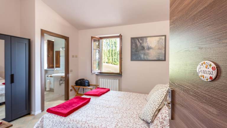 Die Zimmer im Hotel Borgo Pulciano Resort sind gemütlich eingerichtet und verfügen über Annehmlichkeiten wie Telefon und WLAN. Es gibt auch rollstuhlgerechte Zimmer mit barrierefreien Bädern für Gäste mit besonderen Bedürfnissen.