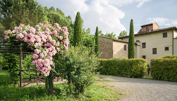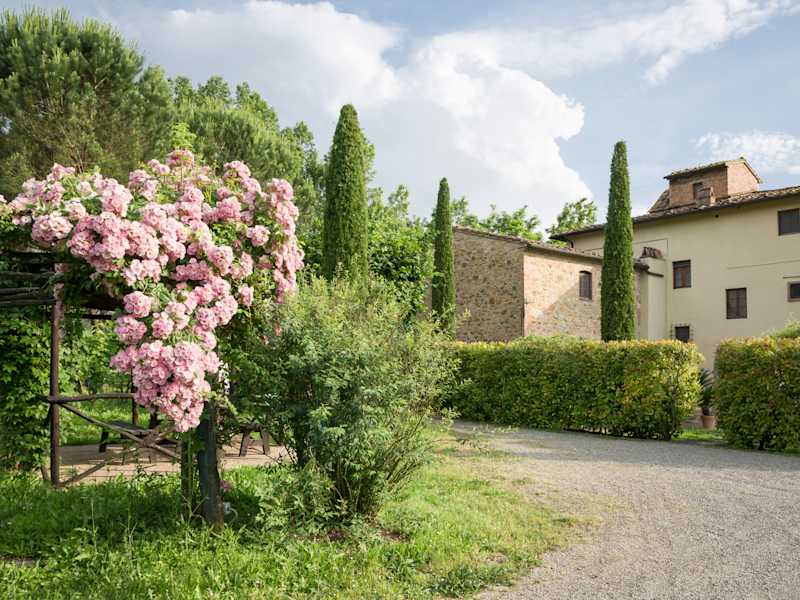 Es war einmal ein Bauernhof aus dem 19. Jahrhundert im Herzen der Toskana, in dem Bauern lebten und arbeiteten, vor allem, um Tabakblätter zu reifen und zu toskanischen Zigarren zu liefern. Als Oma Sestilia und Opa Pietro dort lebten, war Borgo San Benedetto eine Farm am Ufer des Flusses Egola. Als Alessandro und Luciana Masi (1995) von Florenz hierher zogen, wurde daraus ein kleiner Garten Eden. Ein wahres Paradies für diejenigen, die nie genug von Landschaft, Blumen, Sonnenschein, Grillen und Nachtigallen bekommen können. Sie restaurierten die Häuser nacheinander und Luciana verwandelte die Felder in den schönen Garten, den Sie heute sehen können. Der 4 Hektar große Park ist mit Bougainvillea, Zitronenbäumen und versteckten Schwimmbecken inmitten der Weinberge bereichert, die absolute Ruhe garantieren. Heute sind die Bauernhäuser Villa Ripanova und Fattoria sowie die Scheunen Capanna, Fienile und La Tinaia in Gästehäuser umgewandelt worden, die in 16 komfortable Apartments aufgeteilt sind, um einen erholsamen Urlaub zu verbringen.