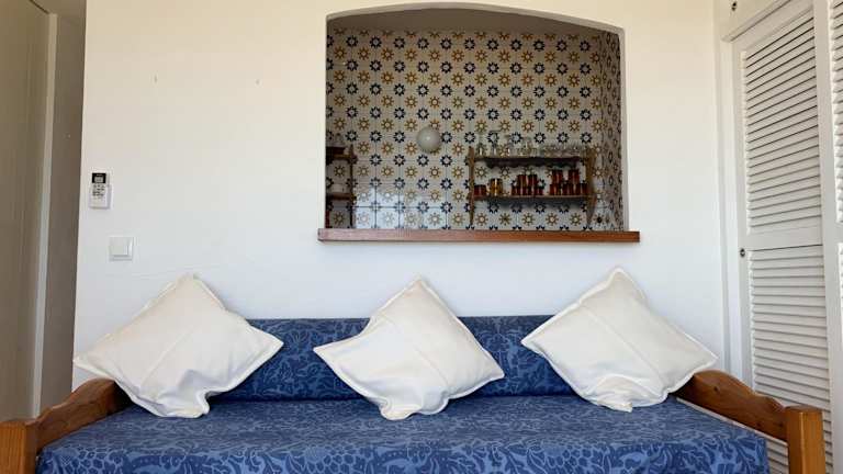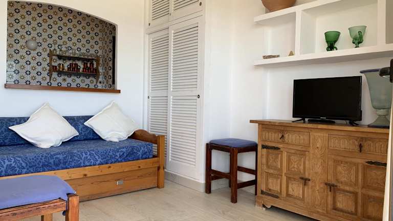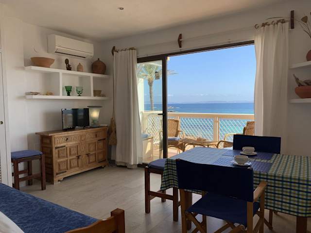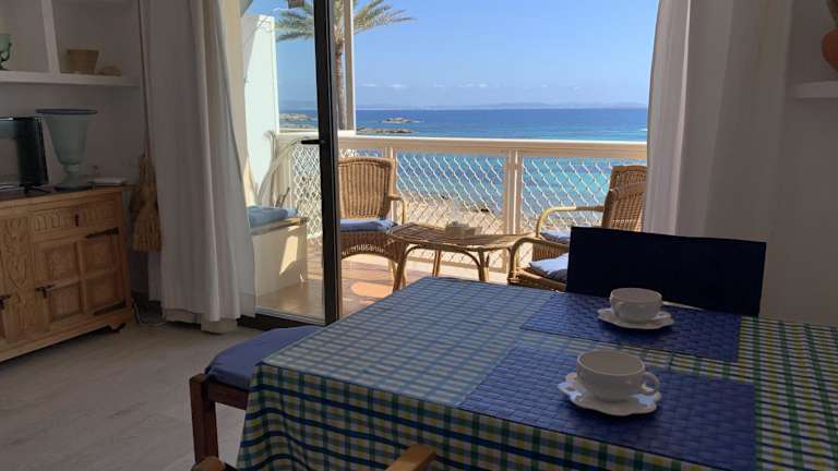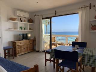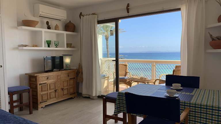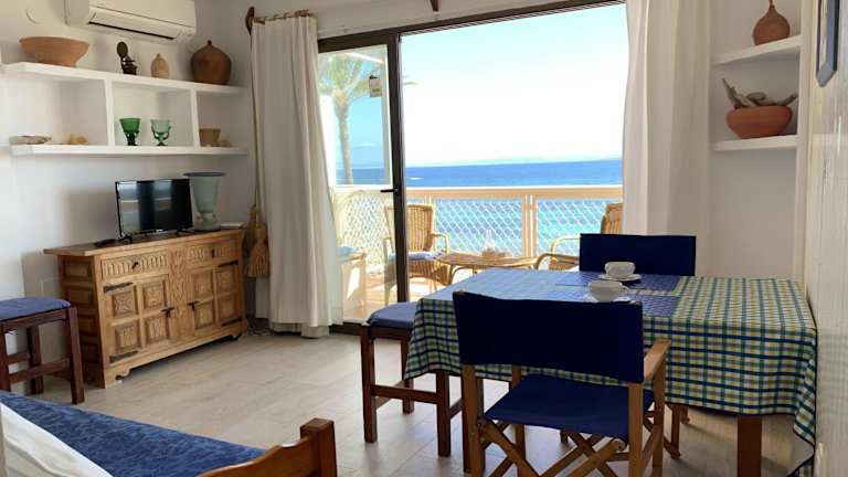 Die Unterkunft befindet sich direkt am Strand Es Pujols, nur etwa 30 m vom Wasser entfernt. Sehenswürdigkeiten wie der Leuchtturm von La Mola und die Estany Pudent Lagune sind in der Nähe.