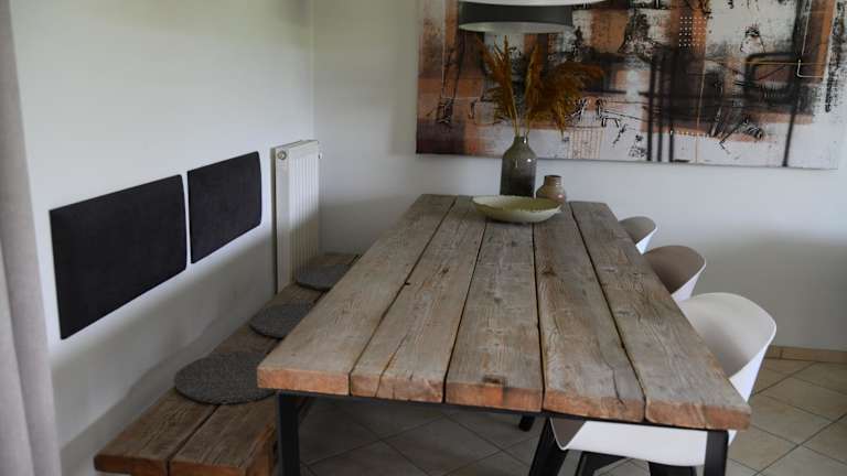 Das Ferienhaus bietet 3 Schlafzimmer, 1 Badezimmer, einen Essbereich und eine voll ausgestattete Küche. Die Zimmer enthalten eine Bettwäsche, Handtücher und einen Flachbild-TV mit Satellitenkanälen. Es gibt eine Terrasse mit Gartenblick, die zur Erholung einlädt. Die Unterkunft ist zudem schallisoliert.