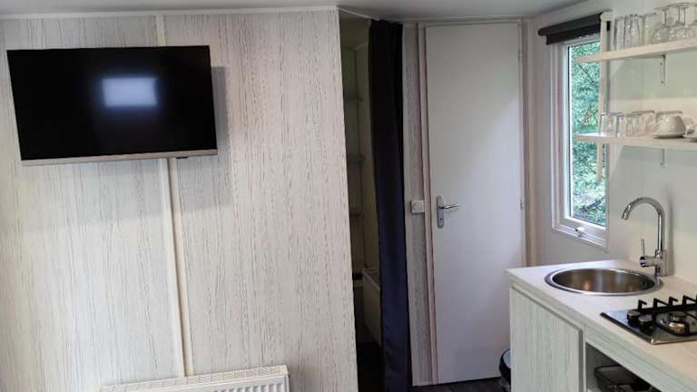 Die Motel-Zimmer im Motel-Bungalow-& Chaletpark de Brenkberg verfügen über einen geräumigen Sitzbereich sowie ein Badezimmer mit WC und Dusche.