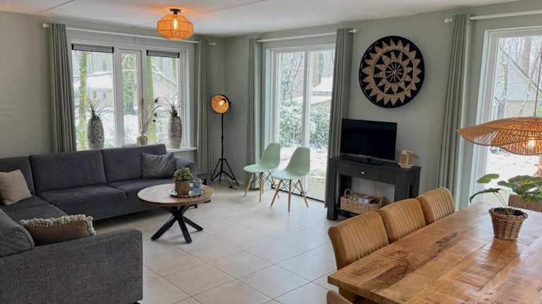 Der Bospark Garderen bietet geräumige Bungalows mit eigener Terrasse und Garten. Die helle Einrichtung in warmen Farben und ein offener Wohnbereich mit Küche sorgen für eine heimelige Atmosphäre. Das Hotel verfügt zudem über eine 24-Stunden-Rezeption und ein À-la-carte-Restaurant mit Bar.