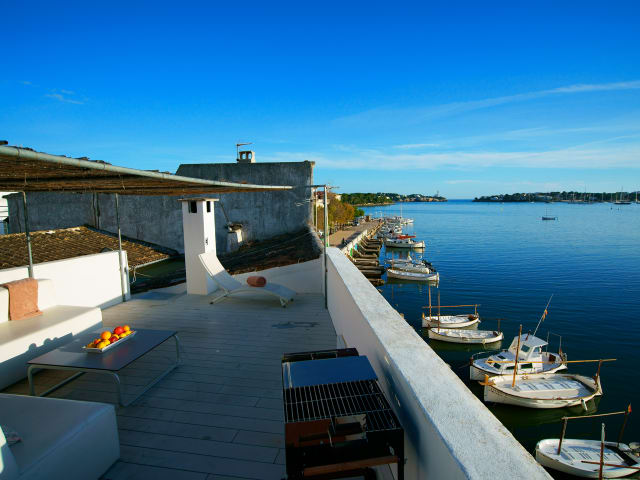 Das Can Gelat ist ein romantisches 2-geschossiges Fischerhaus, liebevoll renoviert und sowohl für den Sommer als auch für den Winter ausgestattet. Bestehend aus 4 Schlafzimmern (3 Doppelzimmer im Obergeschoss und eine Doppel-Suite im Erdgeschoss) und 2 Bädern, eines auf jeder Etage. Im Erdgeschoss befand sich einst eine typische authentische Fischerhütte. Diese wurde mit liebevollen Details renoviert und ist so absolut einzigartig in Portocolom. Von dem Wohnzimmer und der offenen und voll ausgestatteten Küche tritt man hinaus auf eine reizende überdachte Terrasse und geniesst eine wunderbare Aussicht auf die Bucht und kleinen Fischerboote. Es besteht ein direkter Zugang zur „privaten“ Straße zum gegenüberlegendem kleinen Pier, wo unser Boot ankert, welches unsere Gäste nutzen können. Die Suite verfügt über einen separaten Eingang und einen eigenen Hauswirtschaftsraum. Auf der oberen Etage finden Sie ein schönes und helles Wohnzimmer mit Kamin, ideal um in den Wintermonaten eine gemütlichen Atmosphäre zu schaffen, sowie einen Meerblick-Balkon um zu frühstücken oder an den Sommernachmittagen zu lesen. Die Sonnenterrasse ist mit einem Sofa, Sonnendach und einem exklusiven Grill ausgestattet. Geniessen Sie einen fantastischen Blick auf einen der schönsten Naturhäfen der Insel. Ein idealer Ort um die Schönheit und die Ruhe des Hafens von Felanitx zu geniessen. Besonders das renovierte Fischerhüttchen im Erdgeschoss besticht neben all den anderen Bootshäusern mit seinem Design und Einzigartigkeit. Direkter Meer- und Bootszugang. Die Unterkunft kann mit bis zu 8 Personen belegt werden.