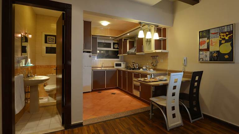 Die komfortablen Zimmer sind in warmen Farben eingerichtet und bieten moderne Annehmlichkeiten wie eine Küche, Klimaanlage, einen Safe, eine Minibar sowie ein Badezimmer mit Dusche und Badewanne. Ausserdem verfügen die Zimmer über einen Flachbild-TV, Kaffee- und Teezubehör sowie einen geräumigen Sitzbereich mit Couchtisch. Zustellbetten sind auf Anfrage verfügbar. Die Unterkunft bietet zudem Familien- und Nichtraucherzimmer.