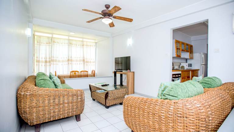 Die komplett möblierten Apartments haben klimatisierte Schlafzimmer und Wohnzimmer, Deckenventilatoren, eine voll ausgestattete Küche, Bettwäsche, einen Safe sowie einen Flachbild-Kabel-TV in den Wohn- und Hauptschlafzimmern. Die privaten Bäder sind mit Duschen ausgestattet. Die meisten Apartments sind nur über Treppen erreichbar.