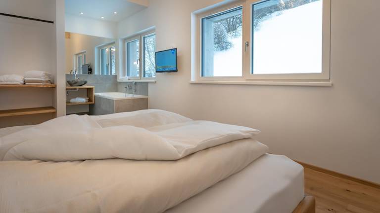 Die Zimmer sind mit einem Balkon ausgestattet, der einen schönen Blick auf die Berge bietet. Jedes Zimmer verfügt über eine komplett ausgestattete Küche, ein eigenes Bad mit Dusche und Annehmlichkeiten wie weiche Bademäntel und Saunapantoffeln. Allergikerfreundliche Zimmer sind ebenfalls verfügbar.