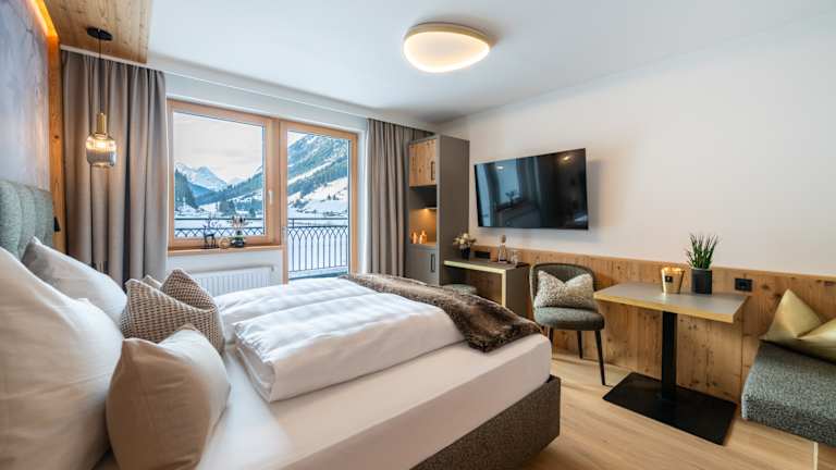 Wir bieten Ihnen neue komfortable Hotelzimmer, Suiten und Ferienwohnungen nach Ihren individuellen Vorstellungen. Eingerichtet mit viel Liebe zum Detail, edlen Stoffen und natürlichen Hölzern. Kostenloses WLAN im ganzen Haus! Genießen Sie den einzigartig freien Ausblick von Ihrem Balkon auf die umliegende Bergwelt und starten Sie ausgeschlafen und erholt Ihren Urlaubstag!