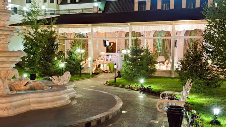 Das Hotelrestaurant serviert traditionelle russische Küche in einem heimeligen Ambiente mit grossen Fenstern und weissen Möbeln. Es gibt auch eine Bar, in der Gäste Drinks geniessen können. Frühstück kann im Zimmer serviert werden, und spezielle Ernährungsbedürfnisse werden ebenfalls auf Anfrage berücksichtigt.