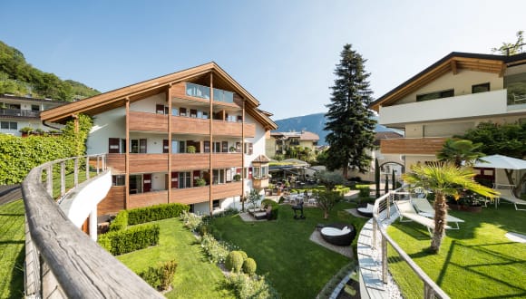 ZUR RUHE KOMMEN POOL, SAUNEN, GARTEN Bio-Kräuter-Dampfsauna, Finnische Sauna und Ruheraum mit Blick in den Garten DER AUSSENPOOLLÄDT EIN, MIT BLICK IN DIE NATUR ZU VERSCHWIMMEN. AKTIVURLAUB IN SÜDTIROL DIE MAGIE DER VIELFALT. Direkt vor unserem Hotel eröffnet sich die herrliche Landschaft des Burggrafenamtes: Vom satten Grün der Apfelplantagen, deren Blüten im Frühling die Landschaft in ein weiß-rosa Blütenmeer verwandeln, geht es über zahlreiche Wander- und Radwege in allen Schwierigkeitsgraden bis hoch hinauf zu majestätischen Berggipfeln, die Ihnen die Ferienregion bei Meran zu Füßen legen.