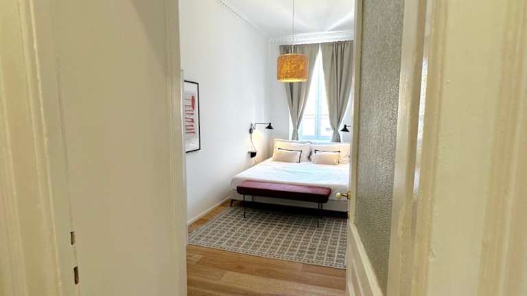 Die Ferienwohnung verfügt über drei Schlafzimmer und eine voll ausgestattete Küche. Zur Ausstattung gehören Klimaanlage, Nichtraucherzimmer sowie Gartenmöbel auf dem Balkon. Handtücher und Bettwäsche werden bereitgestellt. Es gibt einen direkten Zugang zu einem Balkon mit Stadtblick.