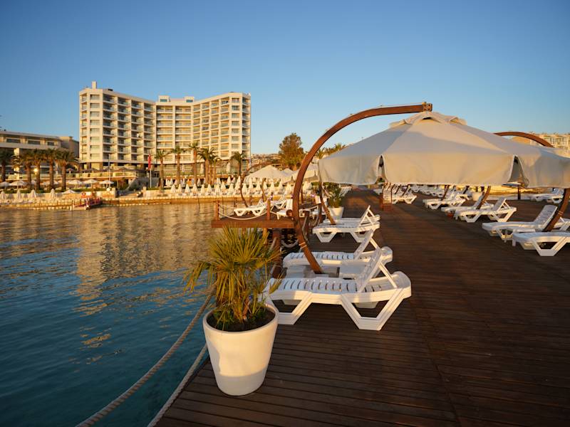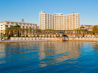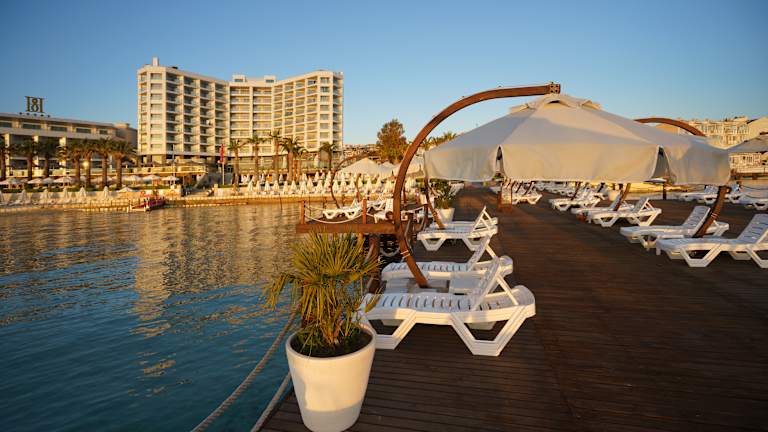 Das Boyalik Beach Hotel Spa & Thermal Resort Cesme ist ein modernes 5-Sterne-Hotel, das direkt am Strand liegt und den Gästen einen erstklassigen Service und erstklassige Annehmlichkeiten bietet. Entspannen Sie am Pool oder am privaten Strand, gönnen Sie sich eine Massage im Spa und Wellnesscenter oder genießen Sie eine Mahlzeit in einem der Restaurants. Die Zimmer sind komfortabel eingerichtet und bieten allen modernen Komfort. Das Hotel bietet außerdem ein Fitnesscenter und verschiedene Wassersportaktivitäten. Die Innenstadt von Cesme und Alacati sind nur eine kurze Autofahrt entfernt.