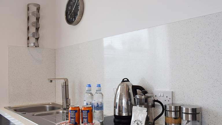 Das Ferienhaus umfasst ein Schlafzimmer, einen TV sowie eine gut ausgestattete Küche. Es steht ein Badezimmer mit Dusche zur Verfügung. Handtücher und Bettwäsche werden gestellt.