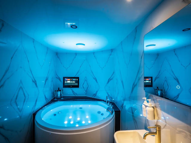 Das Apartment besteht aus einem Schlafzimmer, einem Wohnzimmer und einer voll ausgestatteten Küche, die mit einem Kühlschrank und einem Wasserkocher ausgestattet ist. Zudem steht ein Badezimmer zur Verfügung, welches mit einer Dusche und einem Whirlpool ausgestattet ist. Handtücher und Bettwäsche werden bereitgestellt.