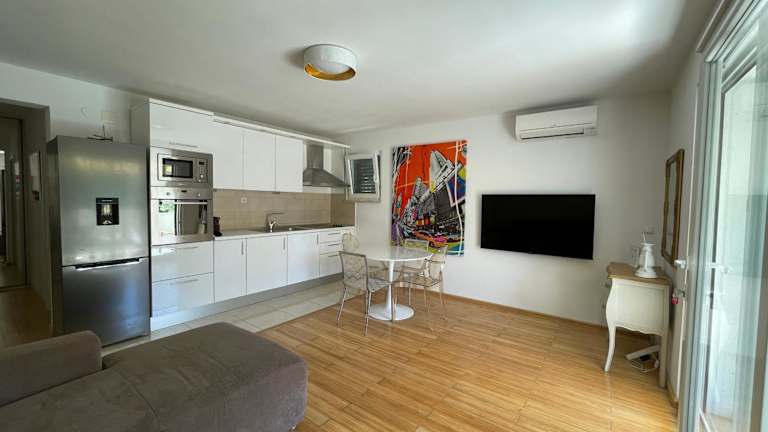 Die Ferienwohnung umfasst ein Schlafzimmer, eine funktionale Küche mit Kühlschrank und Ofen sowie ein gemütliches Wohnzimmer mit Flachbild-TV und Sitzbereich. Zudem gibt es ein Badezimmer mit Dusche. Handtücher und Bettwäsche werden bereitgestellt.