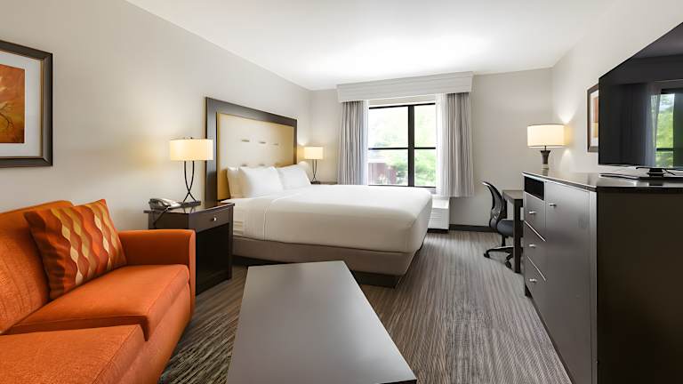 Die eleganten Gästezimmer sind mit einem Flachbild-TV, einem Kühlschrank, einer Kaffeemaschine für Einzelportionen und einem Haartrockner ausgestattet. Die Badezimmer verfügen über Granitarbeitsflächen und alle Zimmer bieten Annehmlichkeiten für die Bequemlichkeit der Gäste.