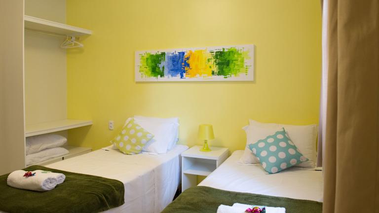 Die Unterkünfte im Brazilodge All Suites Hostel sind komfortabel eingerichtet und verfügen über ein Regal am Bett mit einer Lampe und einer Steckdose. Alle Zimmer beinhalten ein Gemeinschaftsbad oder ein eigenes Bad sowie einen LCD-Kabel-TV und eine Minibar. Einige Zimmer bieten auch einen Balkon.