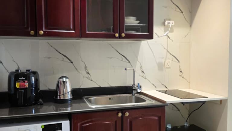 In der Küchenzeile der Ferienwohnung stehen ein Kühlschrank, eine Mikrowelle und eine Minibar zur Verfügung. Außerdem kann eine Essenslieferung in die Unterkunft organisiert werden.