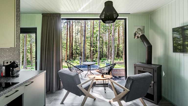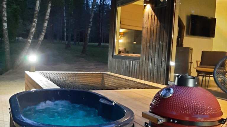 BRENDIS -'Virš Ąžuolų' - Forest SPA bietet Übernachtungsmöglichkeiten in einem heimeligen Ferienhaus mit Garten, Terrasse und verschiedenen Wassersportmöglichkeiten. Die Unterkunft hat eine ruhige Atmosphäre und eignet sich gut für Gäste, die Erholung in der Natur suchen. Die Einrichtungen beinhalten einen Whirlpool mit einem Thermalbad.