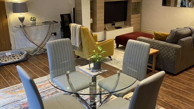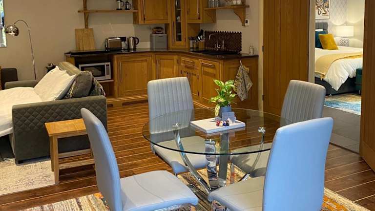 Bridge House Apartment ist eine luxuriöse und heimelige, selbständige Ferienwohnung. Sie verfügt über einen Garten und eine Terrasse und bietet eine einladende Atmosphäre für Gäste.