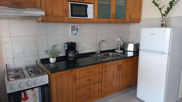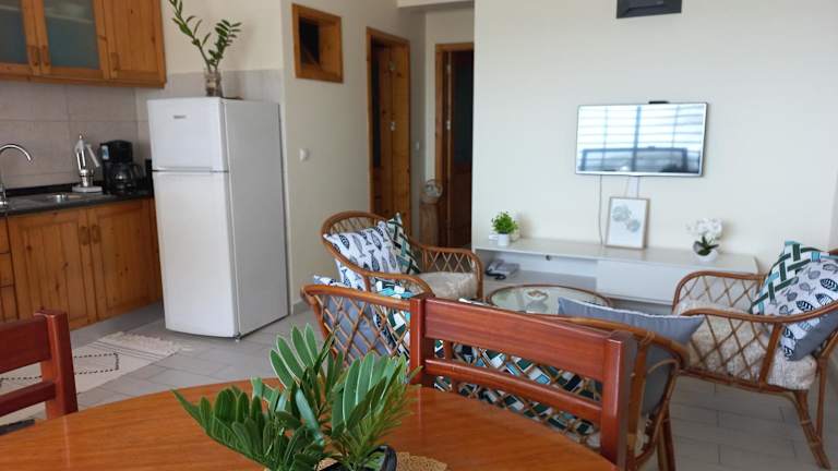 Die Ferienwohnung umfasst 2 Schlafzimmer, 1 Badezimmer und ist ausgestattet mit Bettwäsche, Handtüchern sowie einem Flachbild-TV. Eine voll ausgestattete Küche ist vorhanden, ebenso ein Balkon mit Blick auf das Meer.