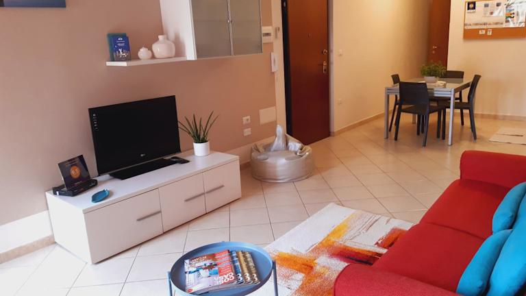 Die Ferienwohnung ist klimatisiert und umfasst ein Schlafzimmer, ein Wohnzimmer sowie eine voll ausgestattete Küchenzeile mit Kühlschrank und Wasserkocher. Das Badezimmer ist mit einem Bidet und einer Dusche ausgestattet. Zudem steht ein Flachbild-TV zur Verfügung. Die Unterkunft ist Nichtraucher und bietet eine komfortable Ausstattung.