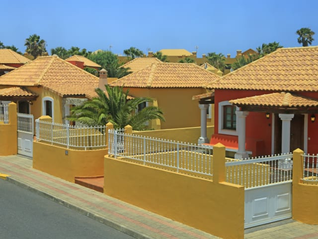 Villas Brisas del Mar ermöglichen einen wunderschönen, ruhigen Urlaub in einer privaten Villa. In einem 600 m² großen Bereich, etwas abseits gelegen, bieten unsere Villas ein privates Schwimmbad, einen Garten und eine Terrasse für gemeinsame Abende oder zum gemütlichen zusammensitzen. Die charmanten Villas sind im Stil der lokalen Architektur gebaut und besitzen ein kanarisches Design, welches aus einer gelben Fasade mit Holz ummantelten Fenstern und gewölbten Deckenbalken besteht. Das geräumige Wohnzimmer in jeder Villa beinhaltet bequeme Sofas, einen Fernseher, einen DVD Player und eine Musikanlage. Die Küche ist komplett ausgestattet mit Waschmaschine, Ofen, Kühlschrank, elektrischem Kochfeld, Kaffeemaschine, Spülmaschine und Toaster. Falls Sie während Ihres Aufenthalts gerne im Freien essen, haben Sie ebenfalls die Möglichkeit neben dem Pool auf der Terrasse der Villa zu sitzen, welche über einen Tisch und Stühle sowie Sonnenliegen, Sonnenschirme und einen Grill verfügt. Bitte beachten Sie, dass Haustiere auf dem Gelände nicht gestattet sind. Die Schlüssel zu den Villas Brisas del Mar erhalten Sie im LABRANDA Corralejo Village.