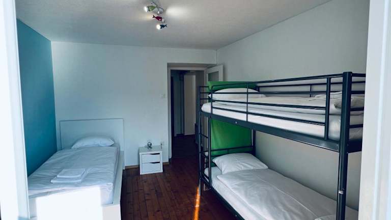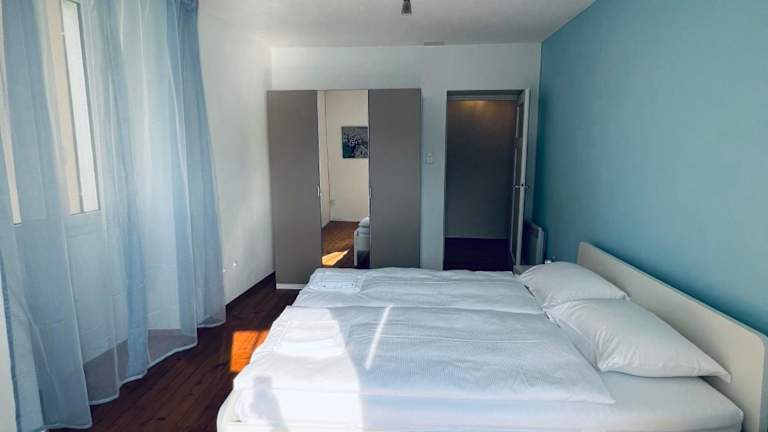 Die Ferienwohnung verfügt über 2 Schlafzimmer, ein Wohnzimmer sowie ein Badezimmer mit Badewanne. Sie ist mit einer voll ausgestatteten Küche, einem Geschirrspüler und einer Kaffeemaschine ausgestattet. Handtücher und Bettwäsche werden bereitgestellt.