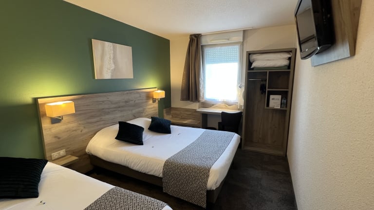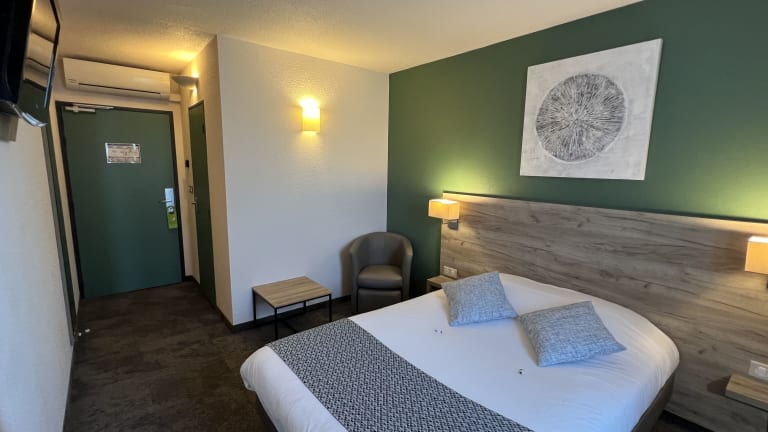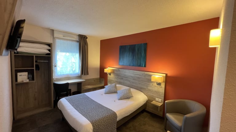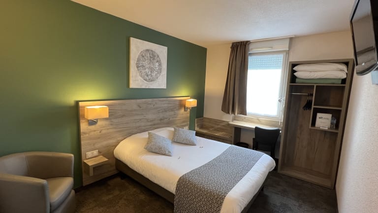 Das Brit Hotel Saumur bietet elegante und stilvoll eingerichtete Nichtraucherzimmer. Gäste können kostenfreie, sichere Privatparkplätze nutzen. Das Hotel verfügt über einen Aufzug und bietet spezielle Einrichtungen für Personen mit eingeschränkter Mobilität auf Anfrage. Haustiere sind erlaubt, möglicherweise fallen Gebühren an. Der Empfang ist von 14:00 bis 22:00 Uhr besetzt, der Check-out erfolgt zwischen 07:00 und 11:00 Uhr.