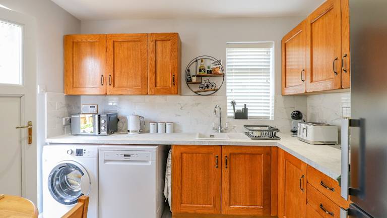 Das Ferienhaus bietet drei Schlafzimmer, einen TV sowie eine gut ausgestattete Küche mit Kühlschrank und Geschirrspüler. Des Weiteren sind zwei Badezimmer mit Dusche vorhanden.