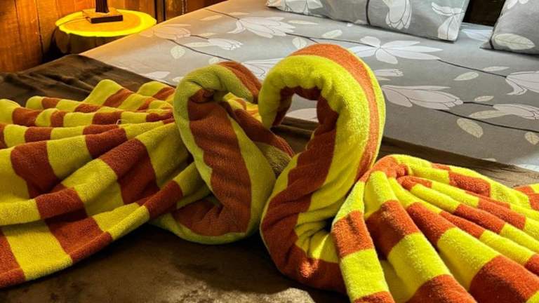 Die Zimmer in den Bronze Bungalows sind geschmackvoll eingerichtet und bieten eine Mischung aus traditionellem und modernem Dekor. Jedes Zimmer verfügt über einen Ventilator, einen Kleiderschrank und eine Terrasse, auf der Sie die frische Luft und die natürliche Umgebung genießen können. Die angrenzenden Badezimmer sind mit einer Dusche und Handtüchern ausgestattet. Einige der Unterkünfte bieten auch eine Warmwasserdusche für zusätzlichen Komfort. Ein kostenfreies WLAN steht in den öffentlichen Bereichen zur Verfügung.