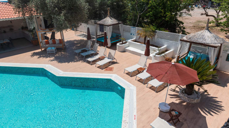 Die Aussenpoolanlage sorgt für erfrischende Erlebnisse, und eine Terrasse mit Sonnenliegen lädt zum Entspannen ein. Zudem bietet die Unterkunft Sport- und Unterhaltungsmöglichkeiten zur flexiblen Freizeitgestaltung, die vor Ort ausgewählt werden können.