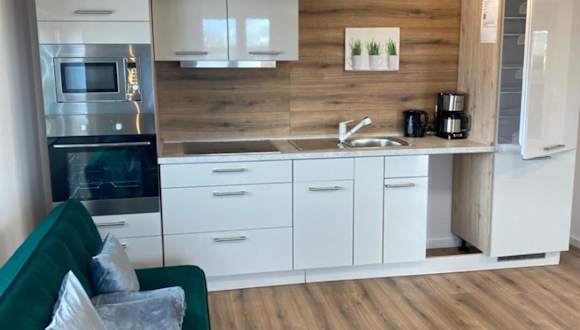 Das Apartment umfasst zwei Schlafzimmer und ein Badezimmer mit einer ebenerdigen Dusche. Zur Ausstattung gehören ein Flachbild-TV, eine voll ausgestattete Küche mit Backofen und Mikrowelle sowie eine Waschmaschine. Handtücher und Bettwäsche werden bereitgestellt.