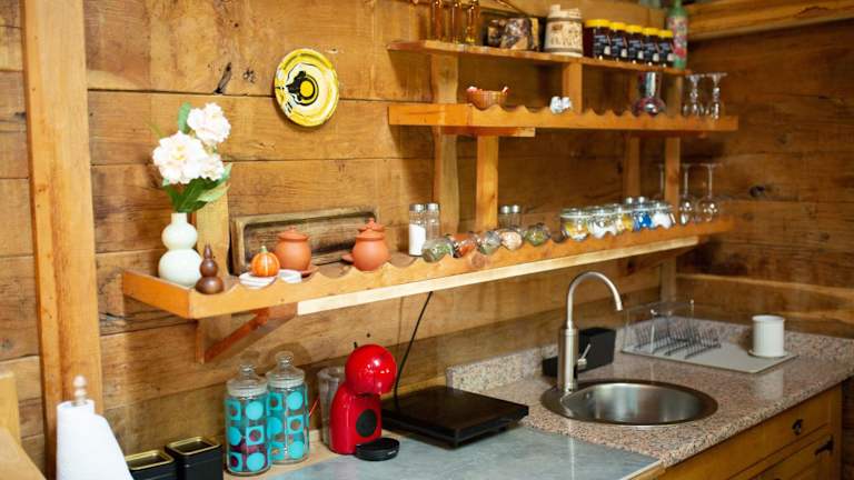 Das Chalet verfügt über ein Schlafzimmer, ein Wohnzimmer, ein modernes Badezimmer mit Dusche sowie eine gut ausgestattete Küche mit Kühlschrank und Ofen. Es sind Handtücher und Bettwäsche vorhanden. Das Chalet bietet zusätzlich einen Flachbild-TV, eine Terrasse mit Flussblick und ist mit Gartenmöbeln ausgestattet.