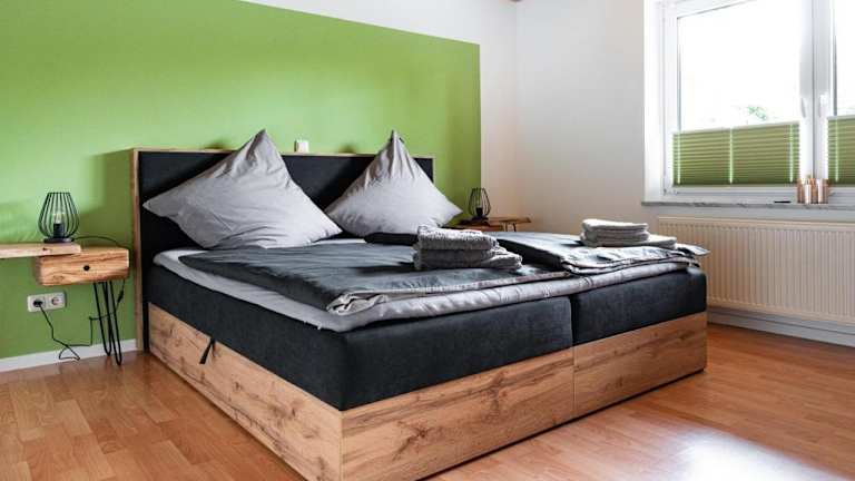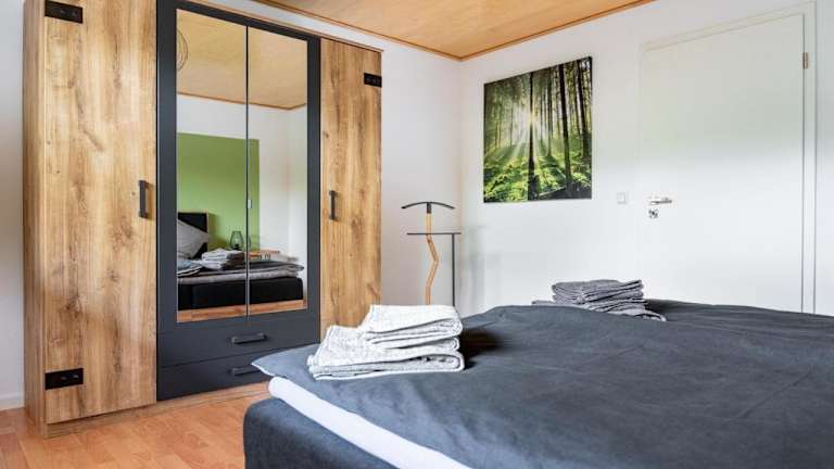 Die Ferienwohnung bietet zwei Schlafzimmer, ein Wohnzimmer sowie eine voll ausgestattete Küchenzeile mit Kühlschrank und Kaffeemaschine. Ein Badezimmer mit Dusche und Haartrockner ist ebenfalls vorhanden. Handtücher und Bettwäsche werden zur Verfügung gestellt.