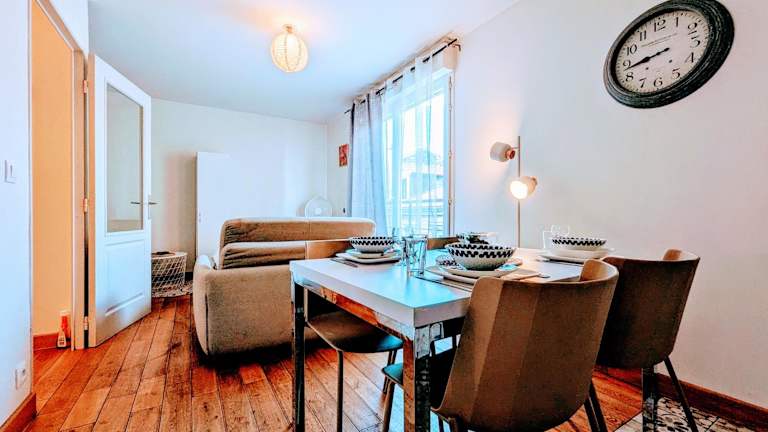 Die Unterkunft befindet sich in Saint-Denis, 3,4 km vom Stade de France entfernt. Die Umgebung bietet Zugang zu verschiedenen Sehenswürdigkeiten, darunter die Konzerthalle La Cigale in 8,5 km Entfernung und die Metrostation Pigalle in 8,6 km. Die Basilika Sacré-Cœur liegt in einer Distanz von 8,8 km, während der Bahnhof Paris-Nord ebenfalls 8,8 km entfernt ist. Der nächstgelegene Flughafen ist der Flughafen Paris-Charles-de-Gaulle, 16 km von der Unterkunft.