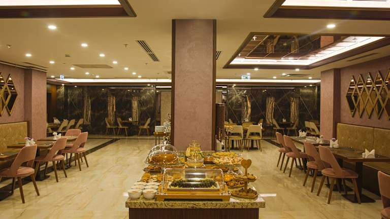 Das Restaurant des Büke Hotels serviert ein köstliches Frühstücksbuffet und eine abwechslungsreiche Auswahl an Mittag- und Abendessen. Darüber hinaus besteht die Möglichkeit, Halbpension und spezifische Verpflegungsangebote wie Diätgerichte und Kindermenüs zu buchen. Snacks und Getränke sind an der Bar und im Café erhältlich.