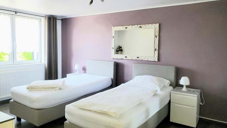 Die Ferienwohnung verfügt über 4 Schlafzimmer, ein Wohnzimmer mit Flachbild-TV, eine gut ausgestattete Küche mit Kühlschrank und Geschirrspüler sowie ein Badezimmer mit Badewanne oder Dusche. Eine Terrasse mit Gartenblick und ein Grill komplettieren das Angebot.