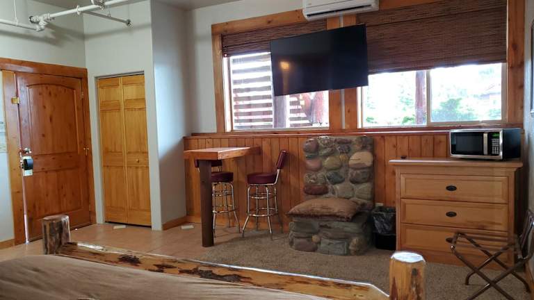 Die Buffalo Lodge of Bigfork bietet Übernachtungsmöglichkeiten mit einem heimeligen Garten, einem kostenlosen Privatparkplatz, einer Terrasse und einem Restaurant. Die Unterkunft hat zudem eine Bar und ein Casino sowie einen Bereich für Karaoke. Einige Wohneinheiten bieten einen Blick auf die Berge, und alle Zimmer verfügen über eine eigene Veranda oder einen Patio.