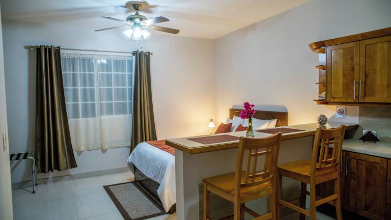 Die Zimmer in Bugambilias Suites sind heimelig eingerichtet und verfügen über eine Klimaanlage sowie einen Flachbild-TV mit Satellitenkanälen. Jede Wohneinheit besitzt eine eigene Küche und einen Essbereich, sowie einen Safe. Zudem sind alle Zimmer mit einem eigenen Badezimmer ausgestattet, welches eine Dusche, kostenlose Pflegeprodukte und einen Haartrockner umfasst. Die Zimmer bieten Stadtblick und sind zusätzlich mit einer Kaffeemaschine ausgestattet. Bettwäsche und Handtücher sind vorhanden.