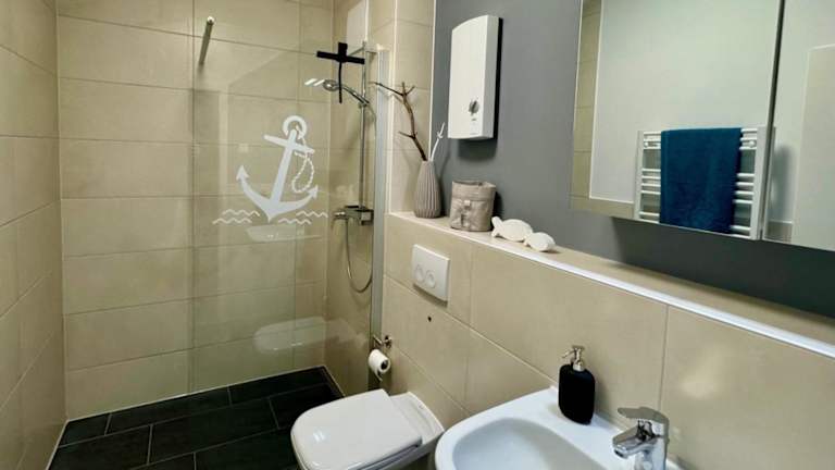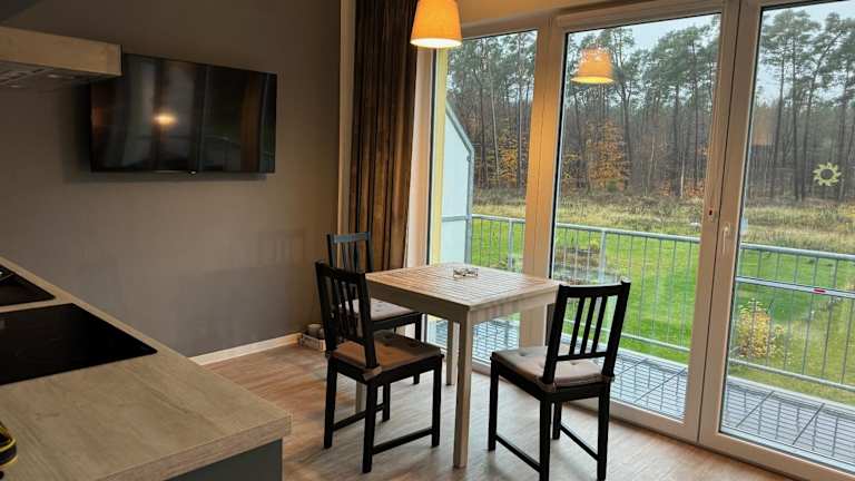 Die Ferienwohnung bietet ein Schlafzimmer, eine Küchenzeile mit Kühlschrank und Geschirrspüler, einen Flachbild-TV und einen Sitzbereich. Das Badezimmer ist mit einer Dusche ausgestattet. Weitere Annehmlichkeiten wie Bettwäsche, Handtücher und eine Wäscheversorgung nach örtlichen Richtlinien werden bereitgestellt.